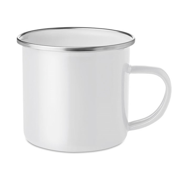 Mok van metaal met email coating. Inhoud 350 ml.