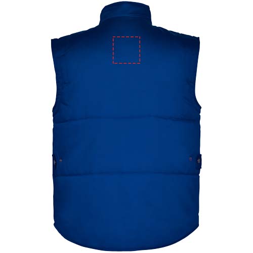 Veelzijdige werkbodywarmer met hoge kraag. Rits aan de voorkant met bandje en klittenbandsluiting. Eén buitenvak voor je telefoon aan de rechterkant. Twee zakken met inzetstukken aan de voorkant en zijsplitten. Twee kleine vakjes voor pennen. Eén binnenzak met klittenbandsluiting. Zakje met rits. Drop tail. Versteller met klittenband.