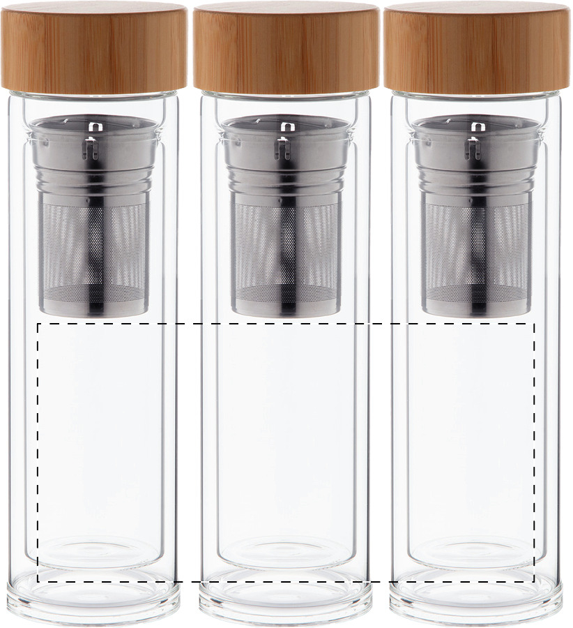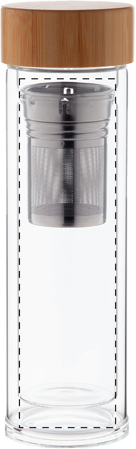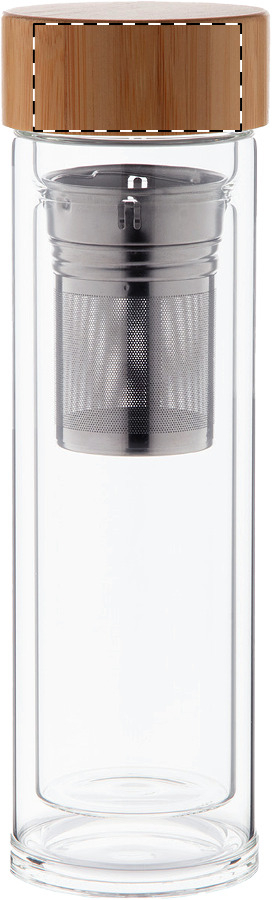 Dubbelwandige geïsoleerde fles van borosilicaatglas met thee-ei en bamboe deksel, 420 ml.