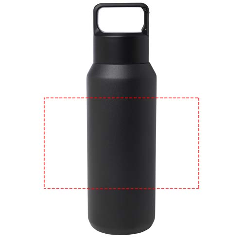 RCS-gecertificeerde roestvrijstalen waterfles met dubbelwandige koper vacuümisolatie, voorzien van een dop met geïntegreerde karabijnhaak, waardoor de fles eenvoudig aan een tas of riem kan worden bevestigd. Houdt dranken tot 48 uur koud of tot 12 uur warm. Ook geschikt voor koolzuurhoudende dranken. Geleverd in een gerecyclede kartonnen geschenkverpakking. Inhoudscapaciteit: 600 ml.