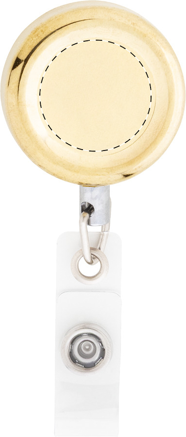Exclusieve metalen badgehouder met hoogglans metallic afwerking. Met druk-noppen sluiting, telescopische lijn en metalen clip.