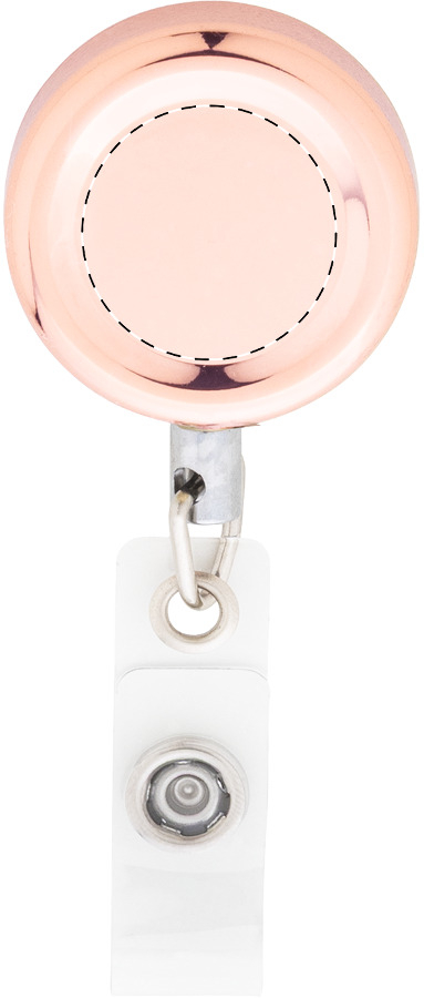 Exclusieve metalen badgehouder met hoogglans metallic afwerking. Met druk-noppen sluiting, telescopische lijn en metalen clip.
