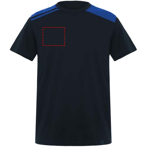 T-shirt met korte mouwen in een kleurencombinatie. Ronde hals met contrasterende, versterkte, bedekte naden. Zijnaden. Contrasterende schouders en details.