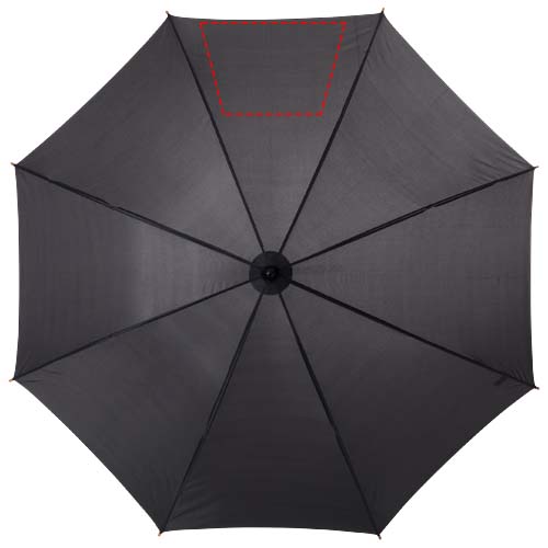 23" paraplu met houten handvat, houten schacht en metalen baleinen.
