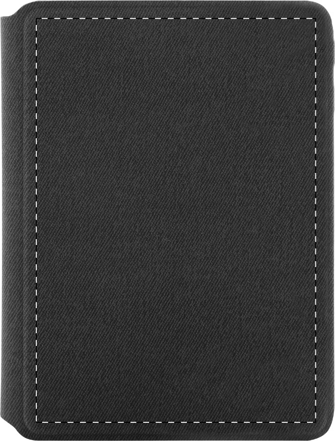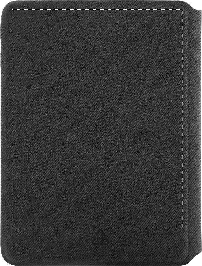 Paspoorthouder van gerecycled PU-leer met vakken voor kaarthouders aan de binnenkant en magnetische sluiting.