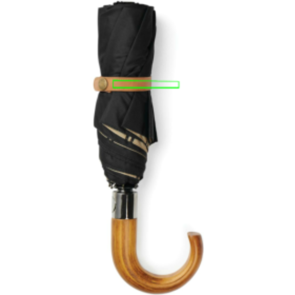 Met onze klassieke en elegante 21-inch paraplu blijft u in stijl droog. De dubbellaagse 190T gerecyclede PET stof biedt voldoende bescherming tegen regen, terwijl de mooie binnenvoering een vleugje elegantie toevoegt aan het ontwerp. De paraplu heeft baleinen en een frame van glasvezel, waardoor duurzaamheid en een lange levensduur gegarandeerd zijn. Het handvat is gemaakt van composiethout, wat een vleugje verfijning toevoegt aan het ontwerp. De paraplu heeft een auto-opener en een handmatige sluiting. De opberghoes in bijpassende stof zorgt voor extra bescherming wanneer de paraplu niet wordt gebruikt. Voorzien van AWARE™ tracertechnologie, die het gebruik van echt gerecyclede materialen valideert en onze inzet voor verantwoorde inkoop benadrukt. Inclusief FSC-gecertificeerde kraft verpakking.