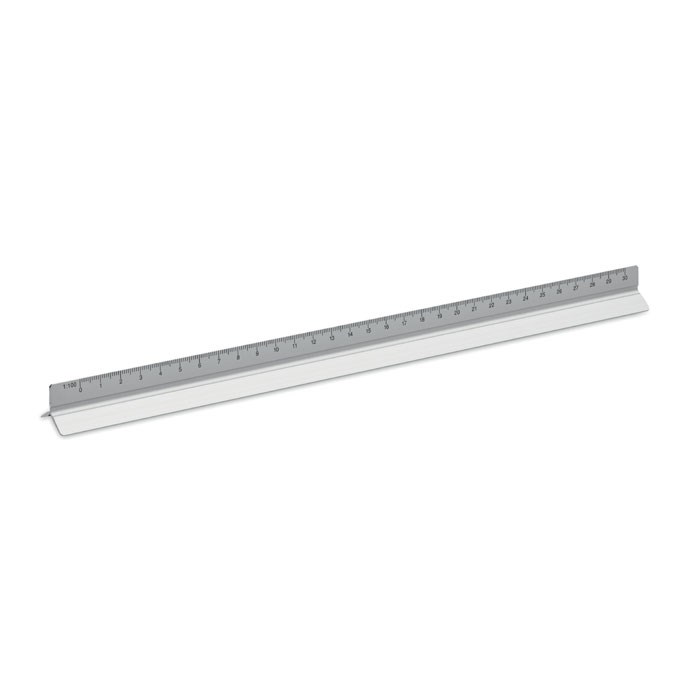 Driehoekige 30cm aluminium liniaal. 3 zijden en 5 verschillende meetschalen. 1:20, 1:25, 1:50,...meer