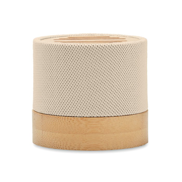 5.0 draadloze luidspreker in RPET behuizing met bamboe detail aan de bovenkant. Het heeft een...meer