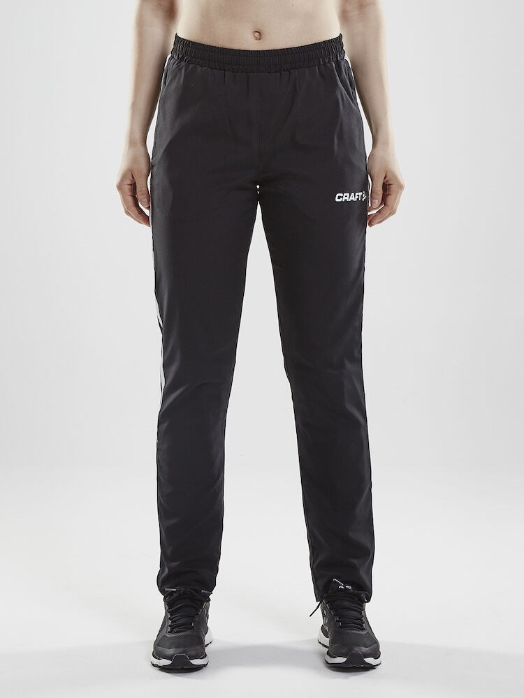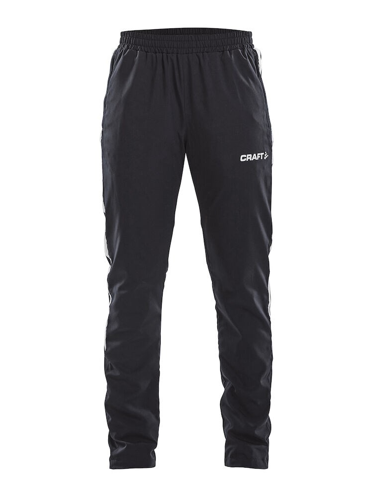Woven, wind-resistant warm-up pants with soft mesh lining for optimal comfort and function. Ergonomic, tight and stretchy fit. Stripes at sides. Rubber-printed logo.