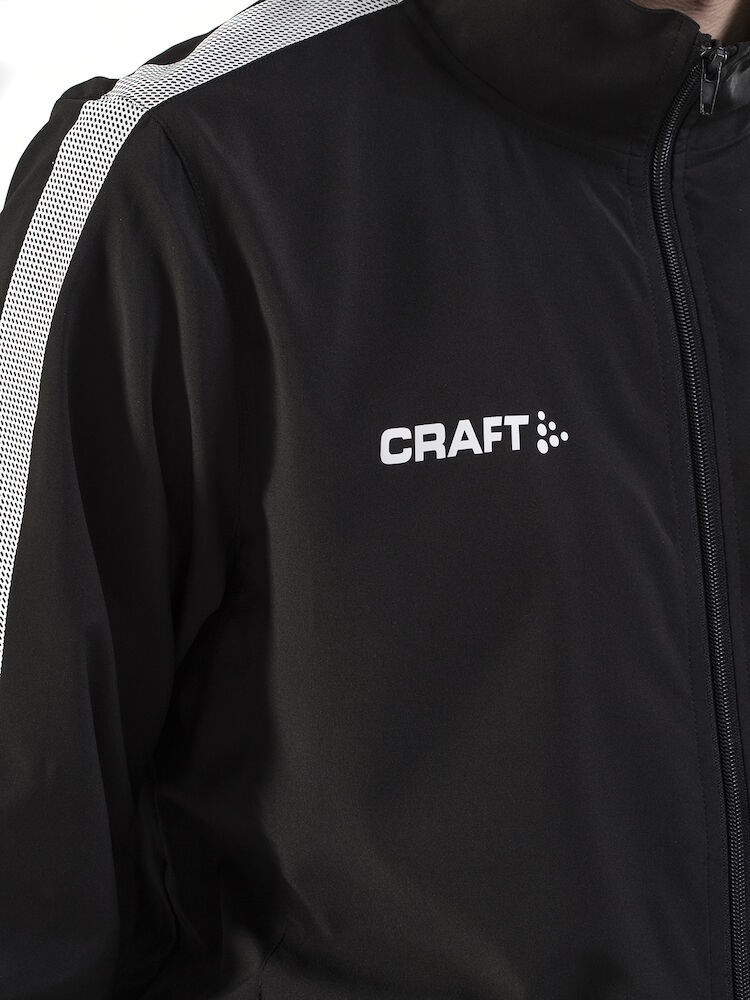Woven, wind-resistant warm-up jacket with soft mesh lining for optimal comfort and function. Rubber print on sleeves.