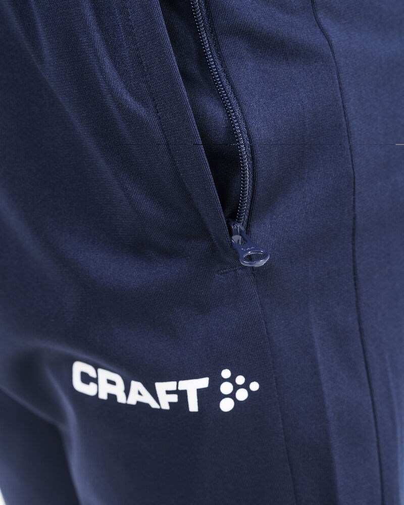 Stretchy training pants made of functional fabric offering superior moisture transport for maximum performance. The pants come with a tight, tapering fit and zippers at leg endings. Zippered side pockets. Elastic waistband and draw cord.