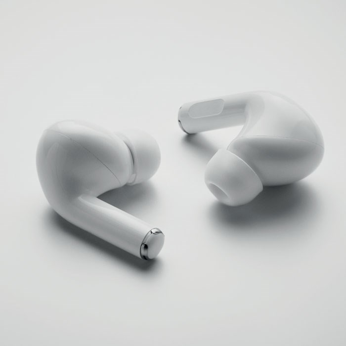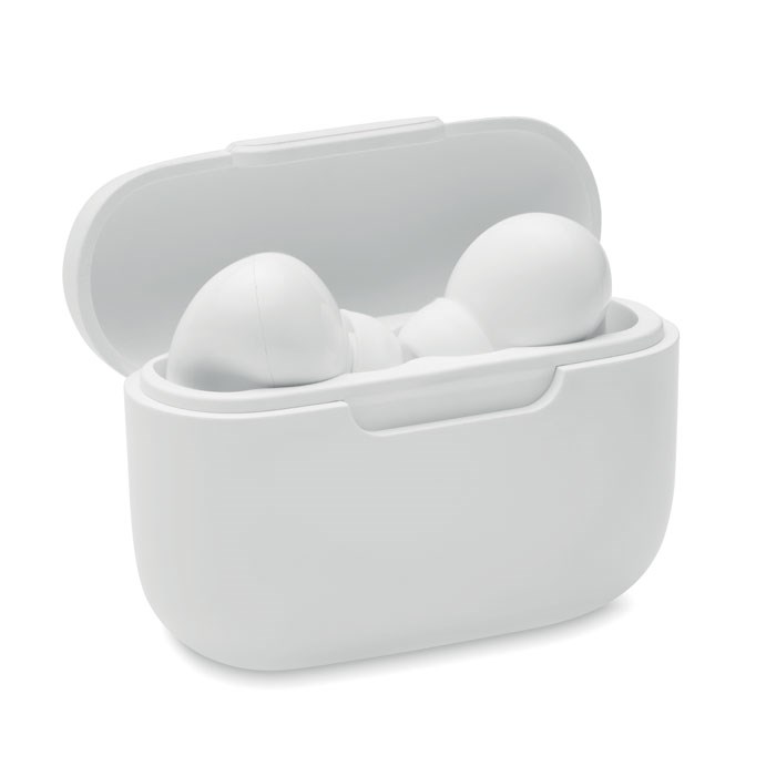 ABS True Wireless Stereo (TWS) 5.3 draadloze stereo-oordopjes met microfoon en 30 mAh ingebouwde batterij. Type-C ingang. Speeltijd +/- 3 uur. Inclusief een 180 mAh laadstation.