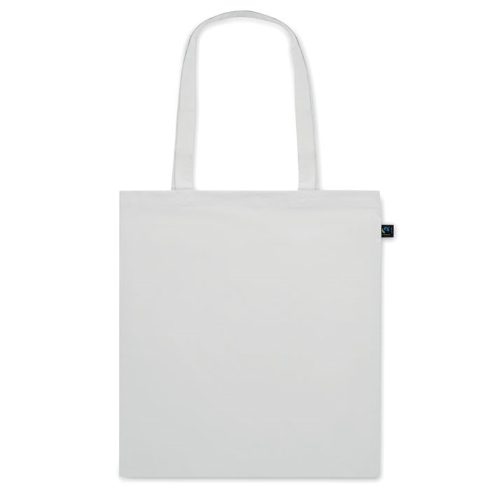 Boodschappentas van gekleurd Fairtrade katoen met lange hengsels. 140gr/m².