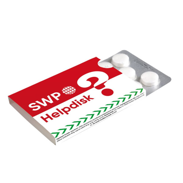 Blister met 10 mini KING pepermuntjes voorzien van een full colour bedrukte sleevemeer