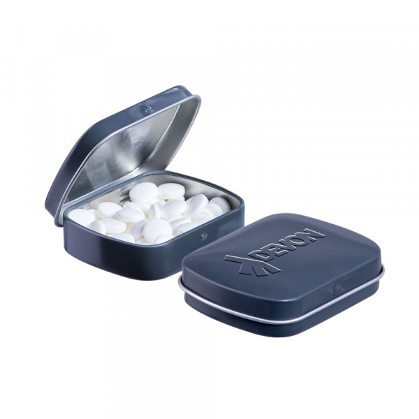 Mini scharnierblikje wit met ca. 23 gram pepermunt en voorzien van embossing. Inclusief...meer