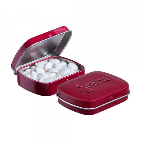 Mini scharnierblikje wit met ca. 23 gram pepermunt en voorzien van embossing. Inclusief...meer