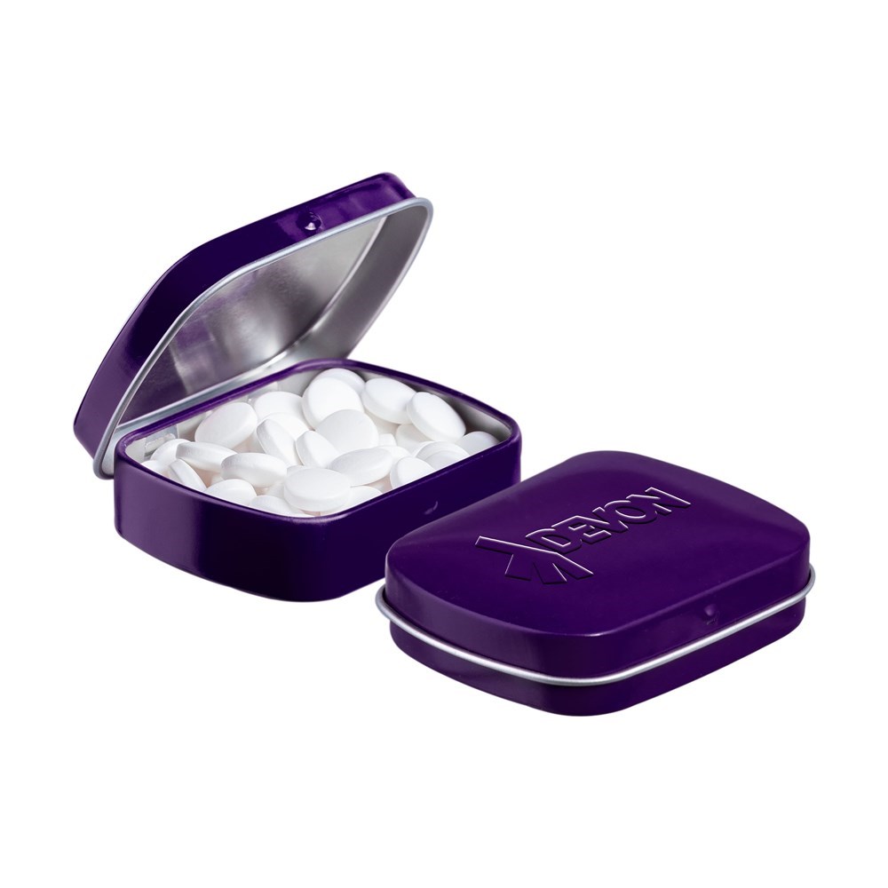 Mini scharnierblikje wit met ca. 23 gram pepermunt en voorzien van embossing. Inclusief...meer