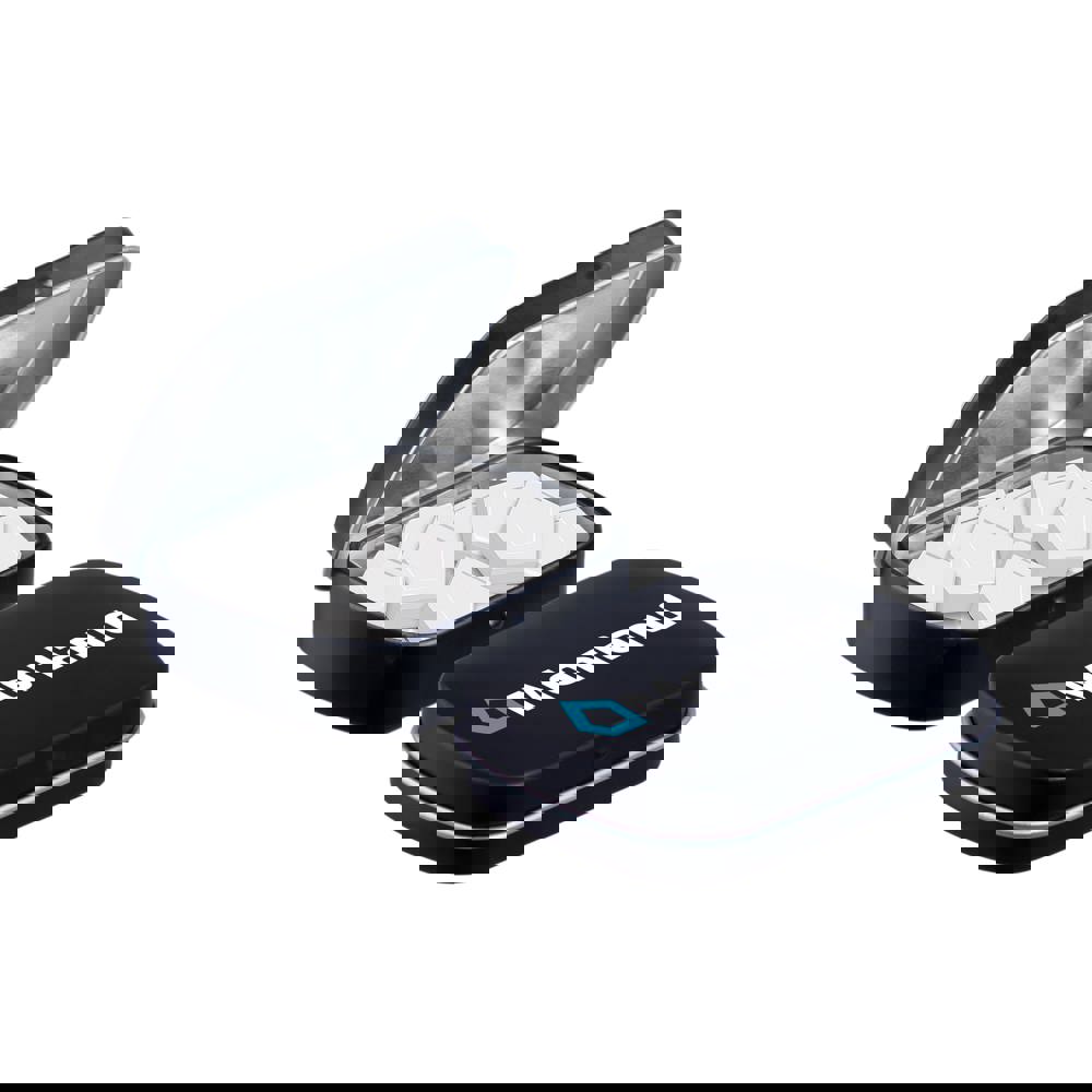 Mini scharnierblikje wit met ca. 23 gram logo pepermunt voorzien van een full colour bedrukking....meer