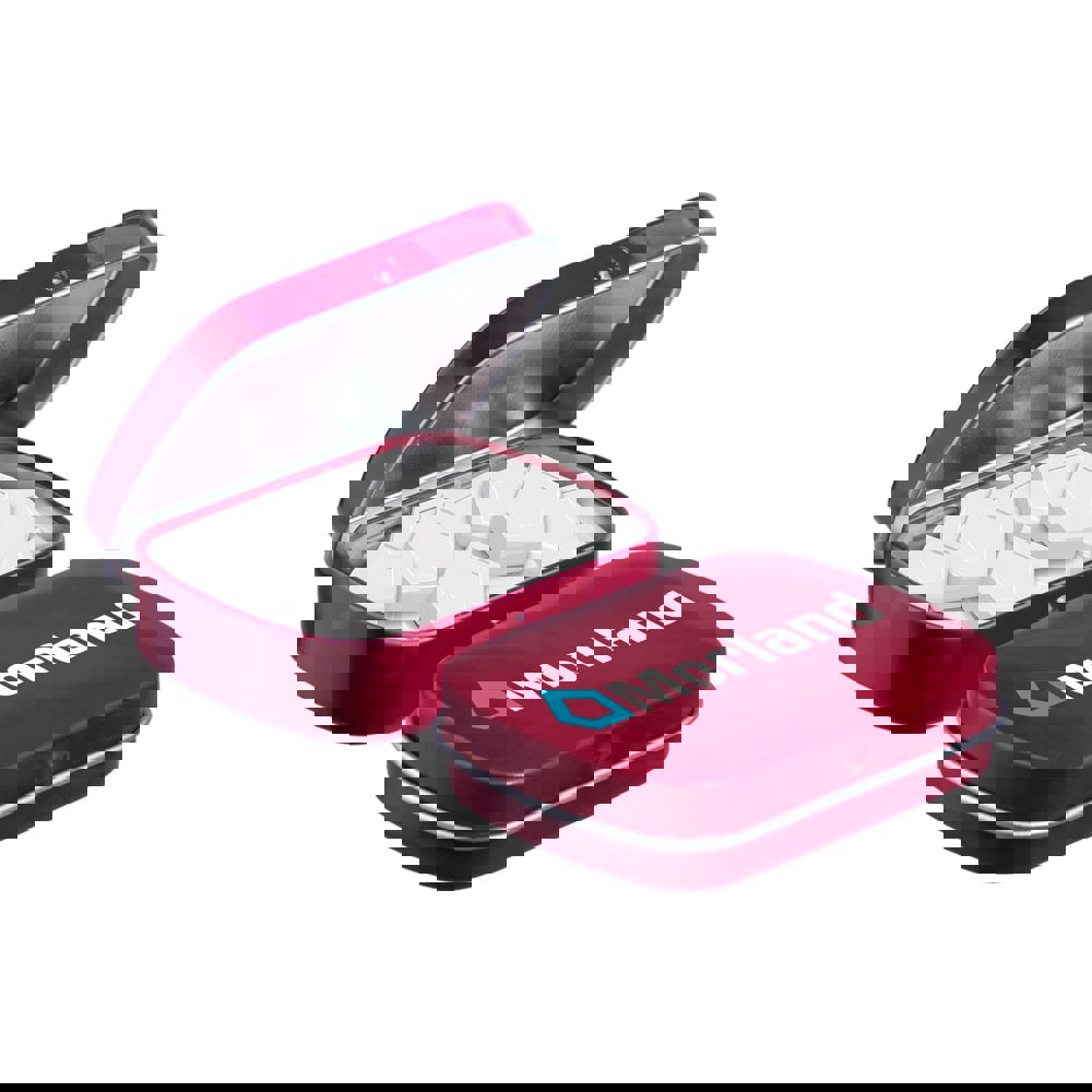 Mini scharnierblikje wit met ca. 23 gram logo pepermunt voorzien van een full colour bedrukking....meer