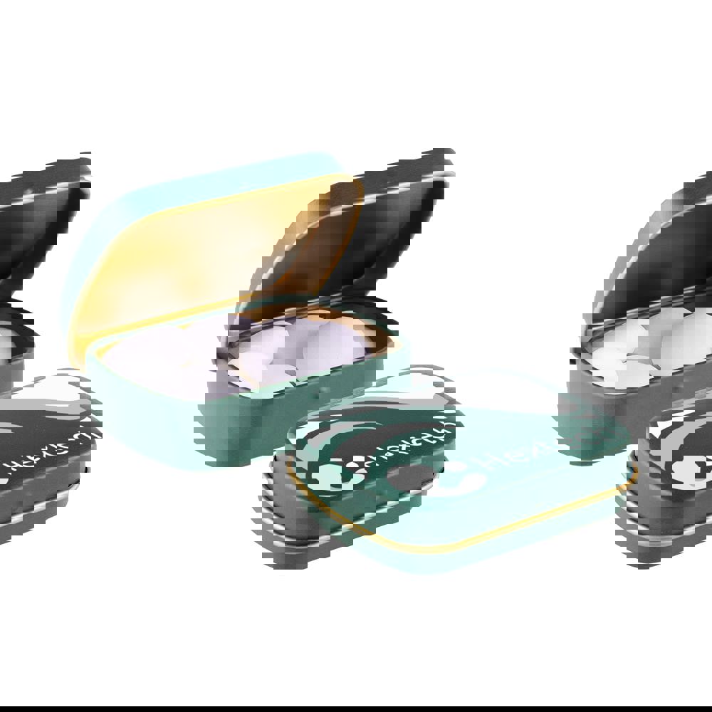Mini scharnierblikje wit met ca. 28 gram Mentos mints en voorzien van een full colour bedrukking. Inclusief ingrediëntensticker en seal.