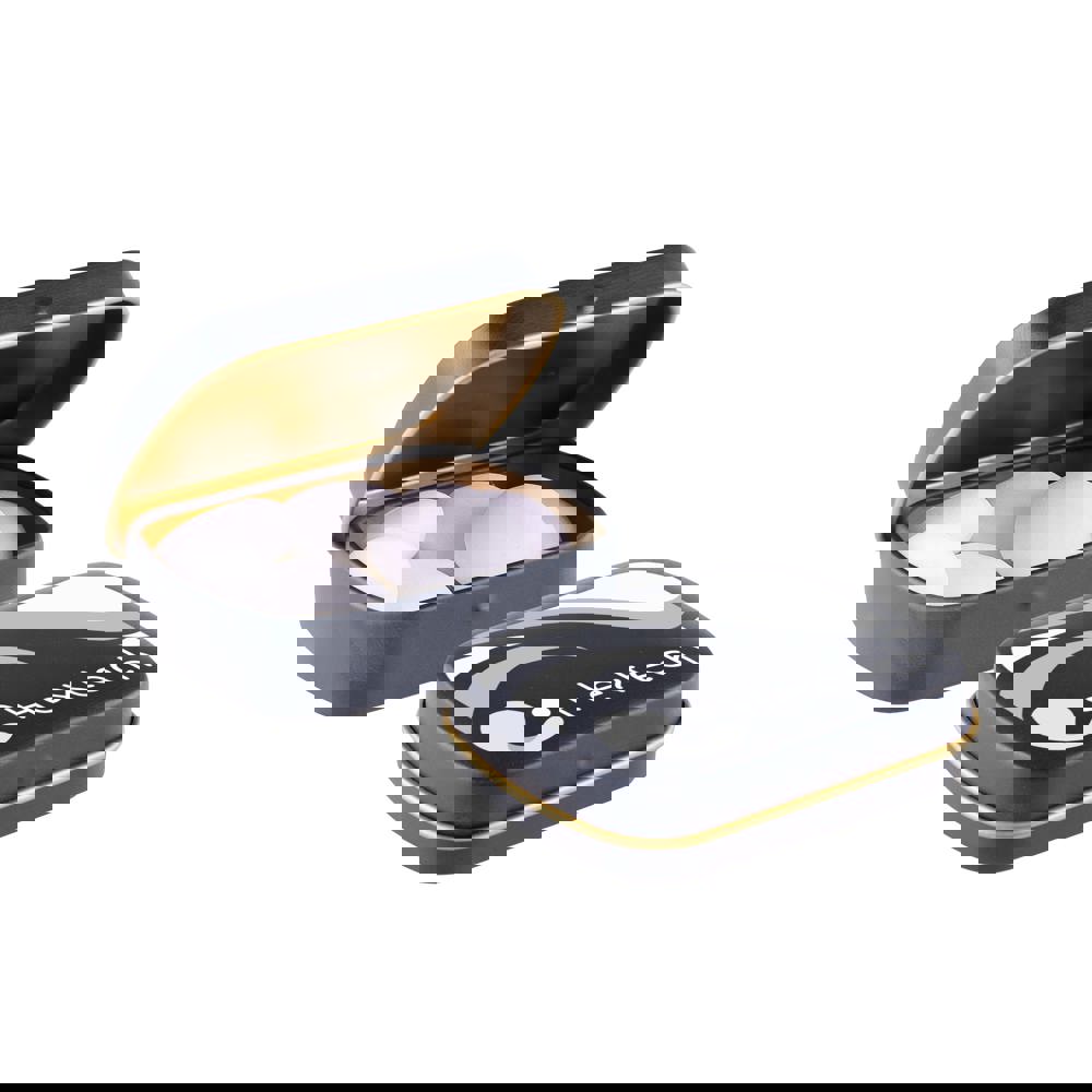 Mini scharnierblikje wit met ca. 28 gram Mentos mints en voorzien van een full colour bedrukking. Inclusief ingrediëntensticker en seal.