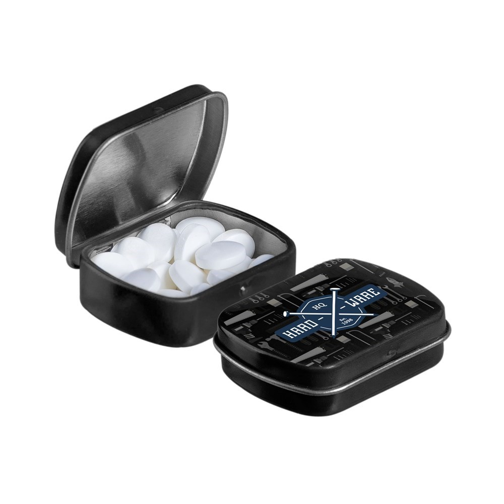 Micro scharnierblikje wit met ca. 9 gram pepermunt en voorzien van een full colour bedrukking....meer