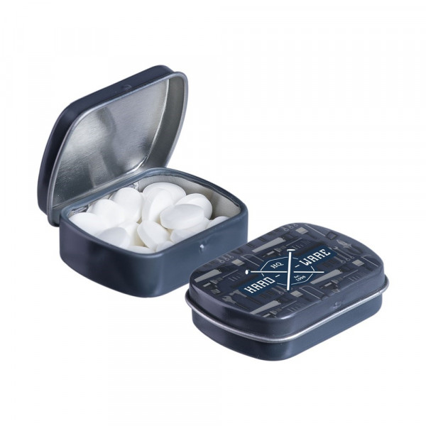 Micro scharnierblikje wit met ca. 9 gram pepermunt en voorzien van een full colour bedrukking....meer