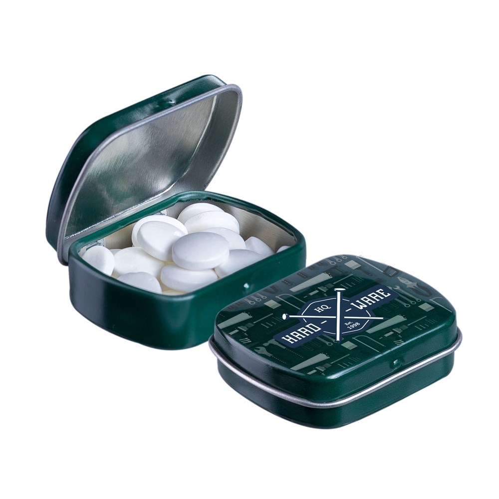Micro scharnierblikje wit met ca. 9 gram pepermunt en voorzien van een full colour bedrukking....meer