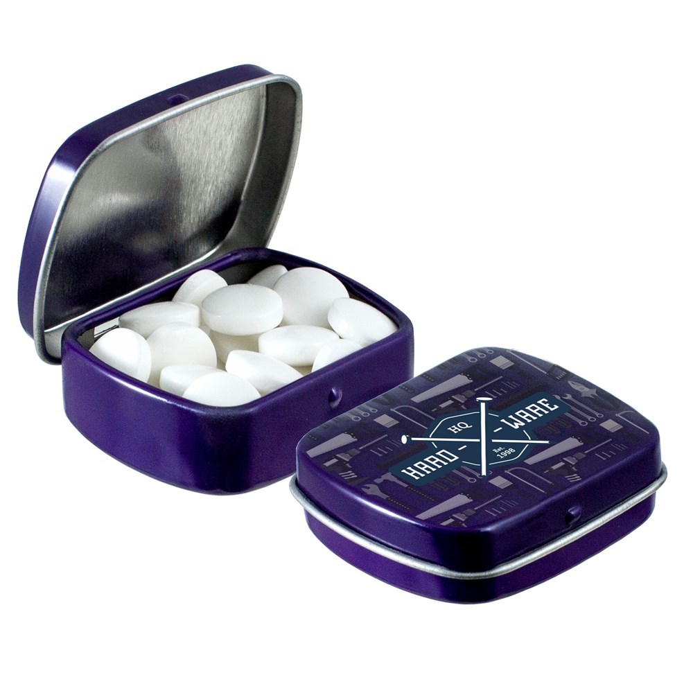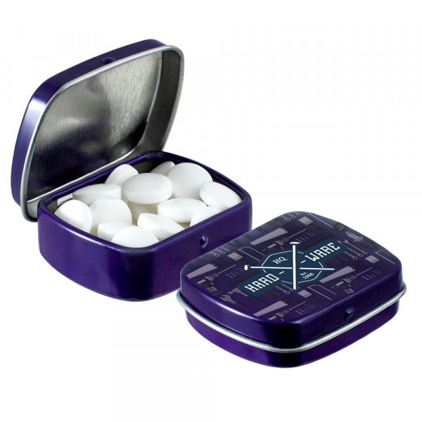 Micro scharnierblikje wit met ca. 9 gram pepermunt en voorzien van een full colour bedrukking....meer