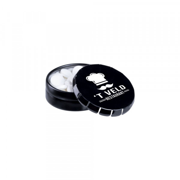Super mini clic-clac blikje wit met ca. 12 gram suikervrije pepermunt en voorzien van een full colour bedrukking. Inclusief ingrediëntensticker en seal.