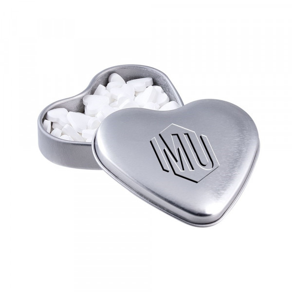 Hartenblikje met embossing en gevuld met pepermunt