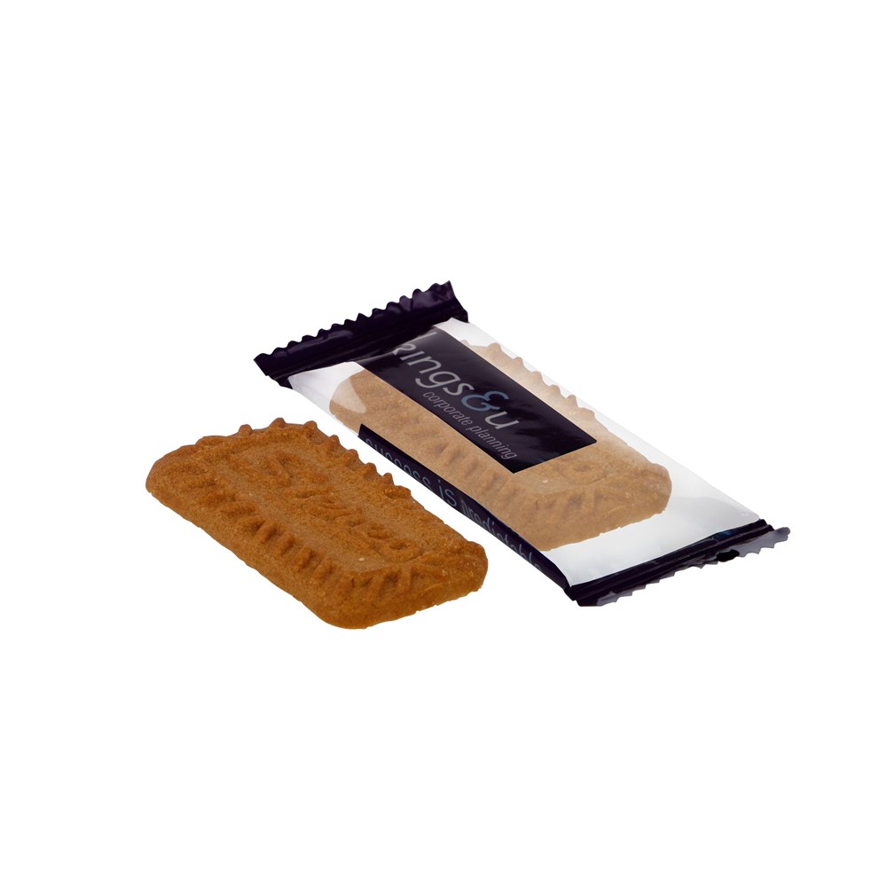 Vegan koffie koekje van ca. 6 gram in transparante folie, voorzien van een all-over full colour bedrukking