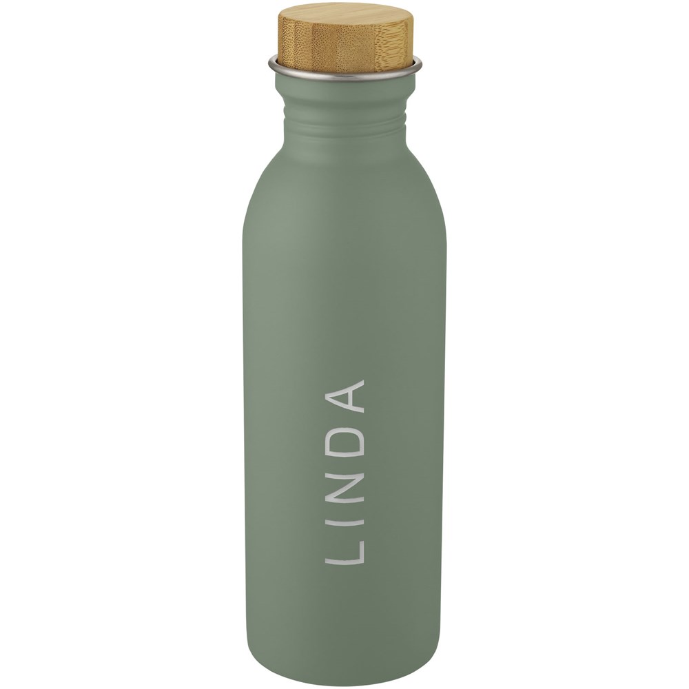 Enkelwandige 18/8 roestvrijstalen drinkfles met een bamboe deksel. BPA-vrij, getest en goedgekeurd volgens de Duitse voedselveiligheidswetgeving (LFGB). Getest en goedgekeurd voor ftalaten volgens de REACH-regelgeving. De gebruikte bamboe is van duurzame, milieuvriendelijke, maatschappelijk verantwoorde bronnen. Inhoud 650 ml Handwas aanbevolen. Geleverd in een gerecycled kartonnen geschenkverpakking.