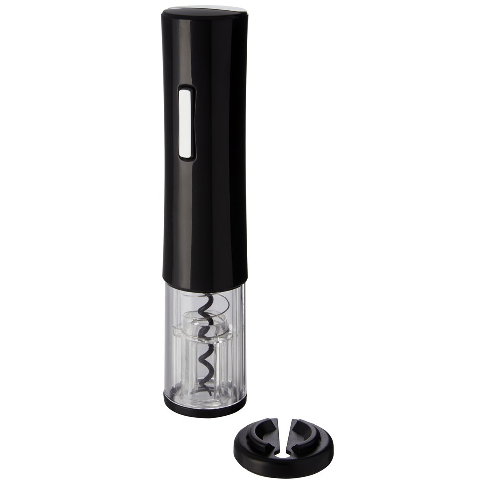 Elektrische wijnopener met foliesnijder. Hij werkt op 4 AA-batterijen (niet inbegrepen).