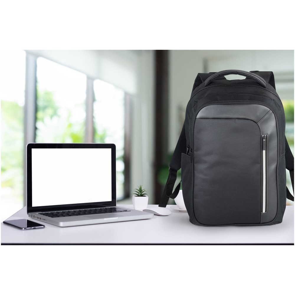 Strakke, moderne 15 "laptop rugzak met een grote voorzijde rits met sleutelhangerhouder. Een...meer