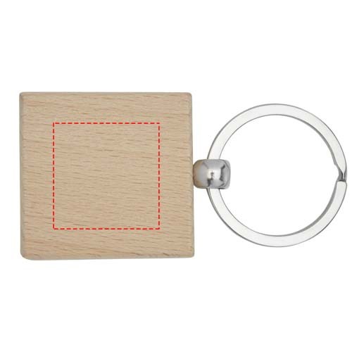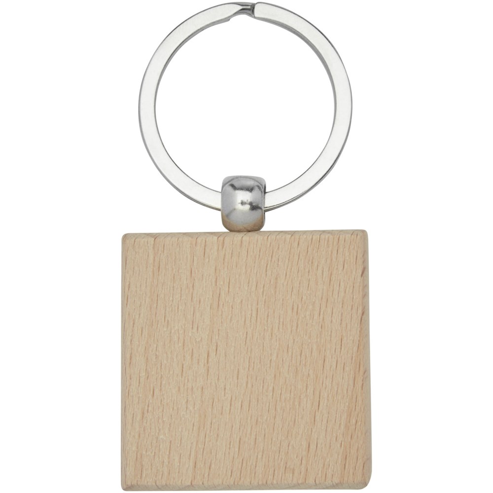 Vierkante sleutelhanger gemaakt van beukenhout, geleverd in een bruine gerecycleerd kraft papieren envelop. De grootte van de sleutelhanger is 4 x 4 cm. Gemaakt voor lasergraveren.