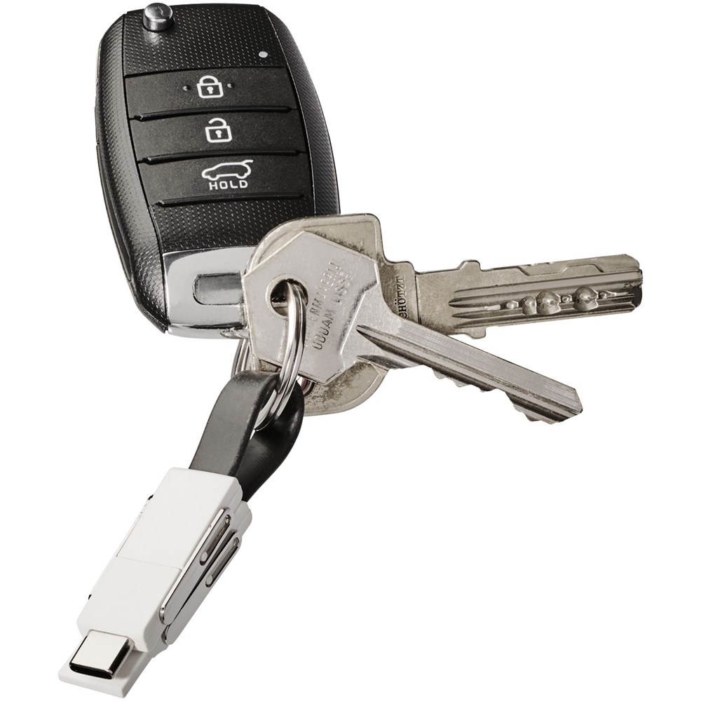 Eén 4-in-1 kabel die alle oplaadbehoeften in één pakket bevat. Het bevat een USB type-A, type-C en een 2-in-1 uiteinde dat compatibel is met zowel iOS- als Android-apparaten. Het kan worden gebruikt voor opladen en gegevensuitwisseling. Wordt geleverd met een sleutelhanger en heeft magneten om gemakkelijk te kunnen dragen.