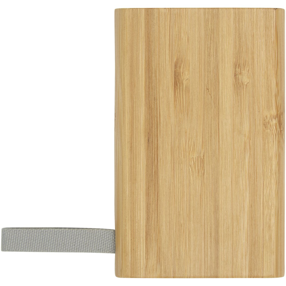 Bamboe powerbank die 5000 mAh back-upstroom biedt voor mobiele telefoons of andere digitale apparaten. Met ledlampjes en een webbing gemaakt van RPET-materiaal. Type-C-oplaadkabel inbegrepen. Verpakt in een geschenkverpakking en geleverd met een gebruiksaanwijzing (beide gemaakt van duurzaam materiaal). Aangezien bamboe een natuurlijk product is, kan ieder item enigszins variëren in kleur.