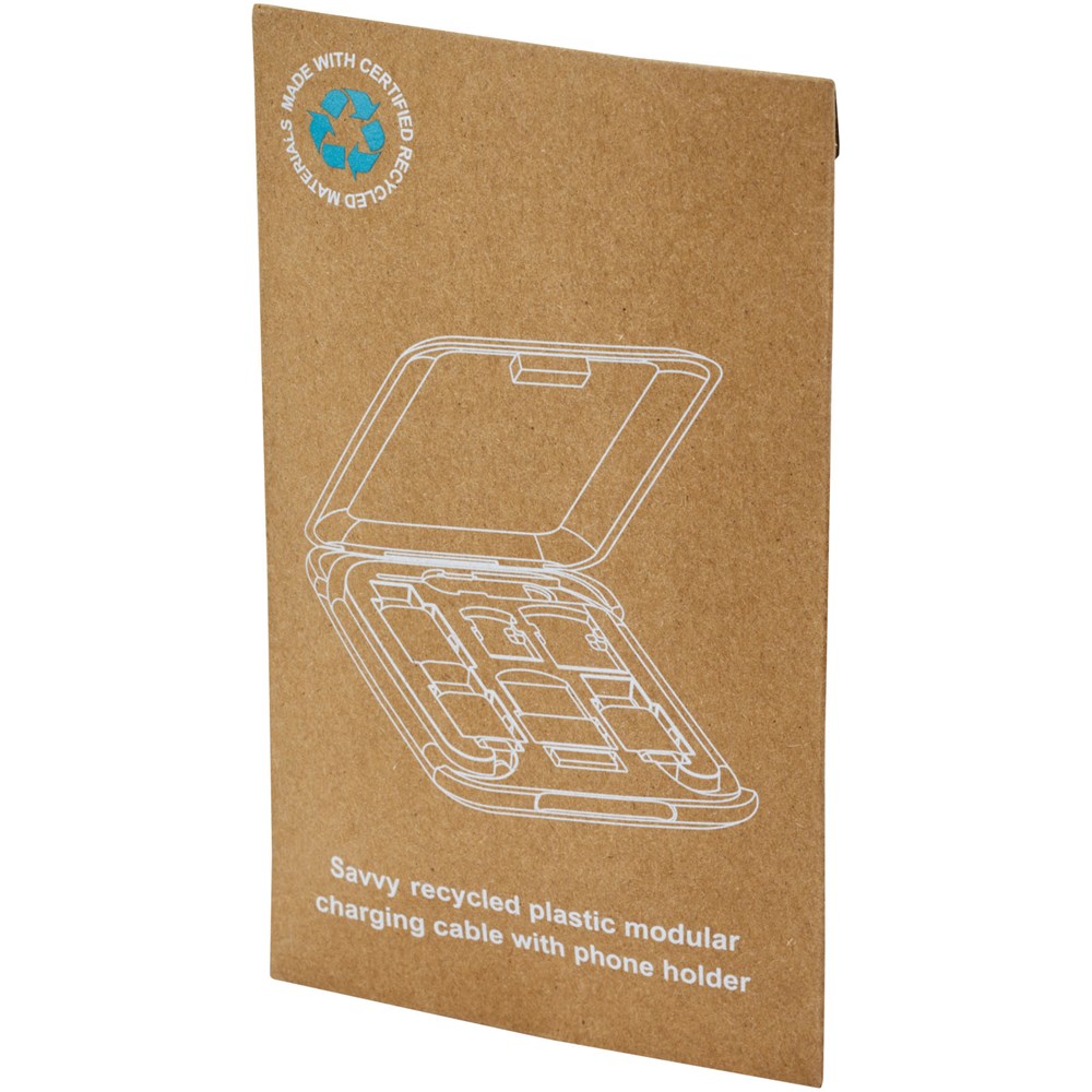 Savvy modulaire oplaadkabel van gerecycled plastic met telefoonhouder