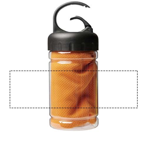 Snel absorberende, sneldrogende en wasbare koelhanddoek gemaakt van sterk en duurzaam polyester voor het koel houden tijdens de training of een buitenactiviteit. Wordt geleverd in een PET-verpakking met draagbeugel en ingebouwde karabijnhaak voor gemakkelijk vervoer. Verkrijgbaar in 5 frisse kleuren. Groot decoratievlak voor het logo op de verpakking, decoratie ook mogelijk op de koelhanddoek zelf. Maat: 30 x 80 cm.