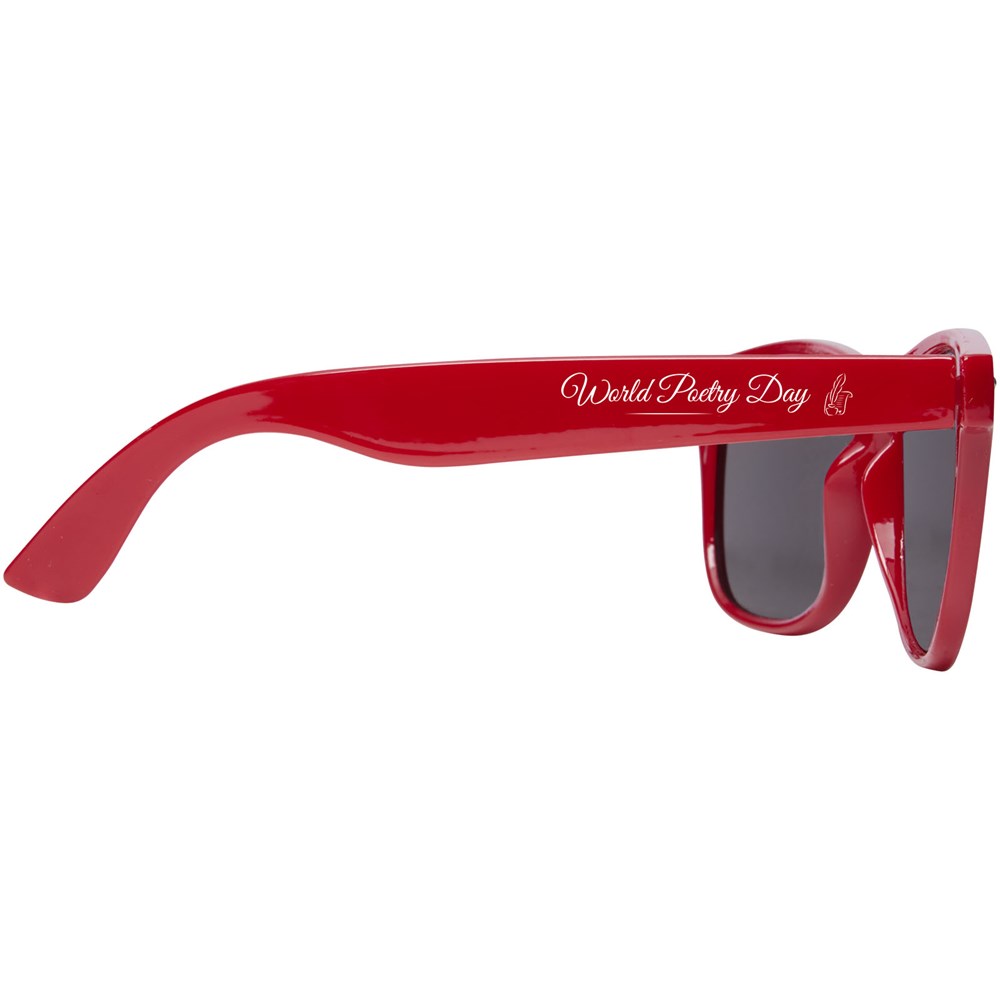 Deze duurzame retro-ontworpen zonnebril is het ideale relatiegeschenk tijdens zomerfestivals, evenementen of andere zonnige buitenactiviteiten. Dankzij het gerecyclede PET plastic is de zonnebril licht van gewicht en comfortabel om te dragen. Deze bril voldoet aan EN ISO 12312-1, heeft UV400-glazen die zijn geclassificeerd als categorie 3, waardoor het de perfecte keuze is voor bescherming tegen fel zonlicht.
