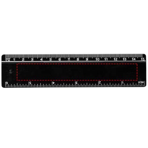 Stevige liniaal met markeringen van gerecycled plastic, beschikbaar in zowel inch als centimeter. meer