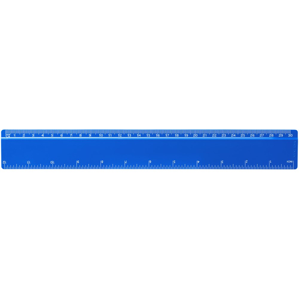 Stevige liniaal met markeringen van gerecycled plastic, beschikbaar in zowel inch als centimeter. meer