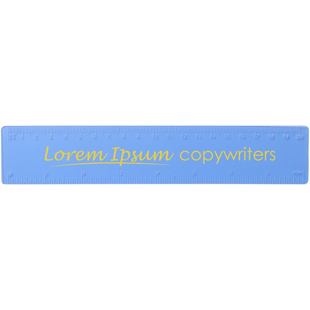 Flexibele lichtgewicht kunststof liniaal met zowel markeringen in inches als centimeters. Let op, de markeringen op de linialen worden samen met het artwork bedrukt, onbewerkte linialen zijn niet voorzien van markeringen.