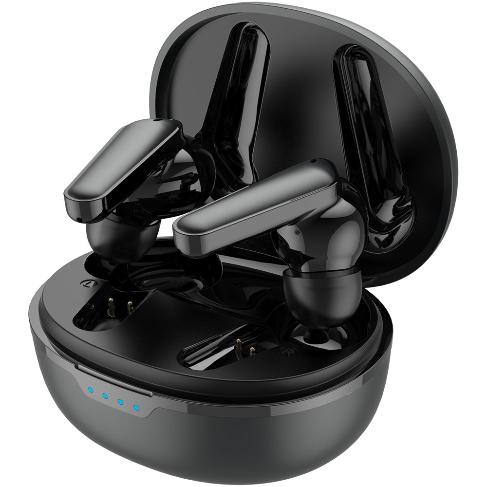 Oordopjes met ENC- en ANC-technologie die omgevingsgeluid dempen zodat de beller in gesprekken (ENC) en de muziek van een aangesloten apparaat (ANC) duidelijk te horen zijn. Met de krachtige batterij gaan de oordopjes tot 7 uur mee op een enkele lading. Oplaadtijd van oordopjes: 1,5 uur. De volledig opgeladen houder kan de oordopjes tot 3 keer opladen.