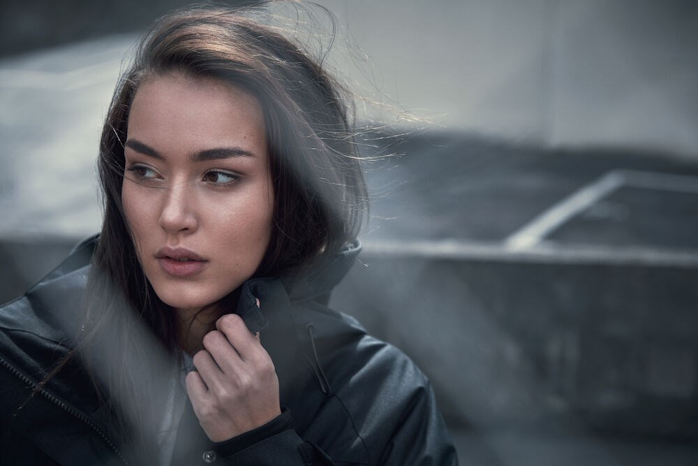 Modern shell jacket with high collar and detachable hood. Blurring the lines between alpine...meer