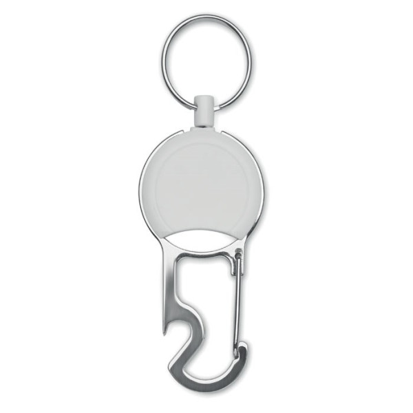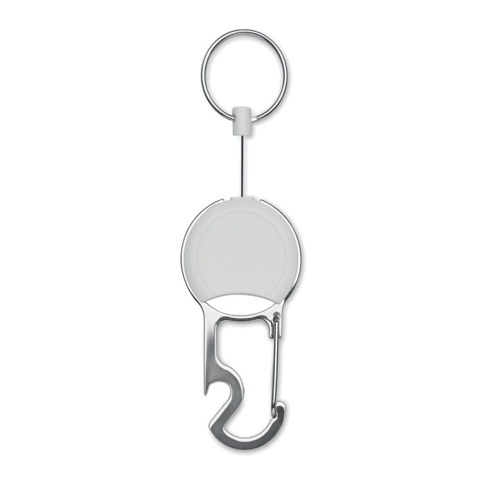 Intrekbare badgehouder in ABS met clip, sleutelring en flesopener.