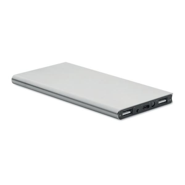 Powerbank 8000 mAh van gerecycled aluminium. Capaciteit voor smartphonegebruik, uitgangsstroom...meer
