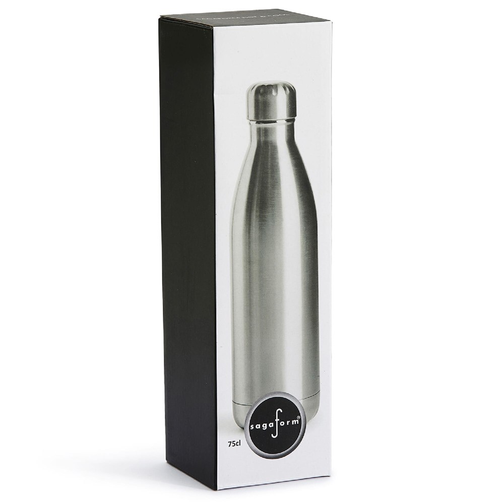Een grotere versie van Sagaform's klassieke en zeer populaire waterfles in het zwart. Bevat 750ml. De geavanceerde vacuümconstructie met dubbelwandig staal en koperen coating zorgt voor een uitstekende isolatie zonder condensatie. De fles houdt drankjes tot 24 uur ijskoud of 12 uur warm.