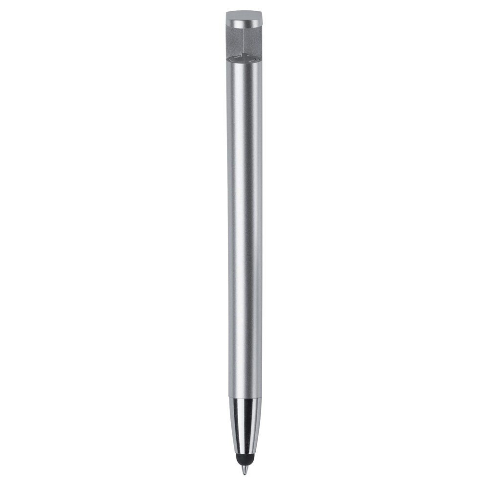 Moderne 3-in-1 balpen met stylus en telefoonstandaard. Een zeer hippe weggever in een strak design. Blauwschrijvende vulling.
